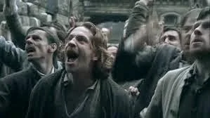 Boucher and Stephens at the riot in Thornton’s mill yard. (from the BBC’s North & South)